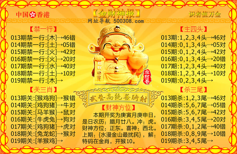 019期生肖诗:八节奇花四进果,中门大旺看自共。心水玄机:猴虎马兔
