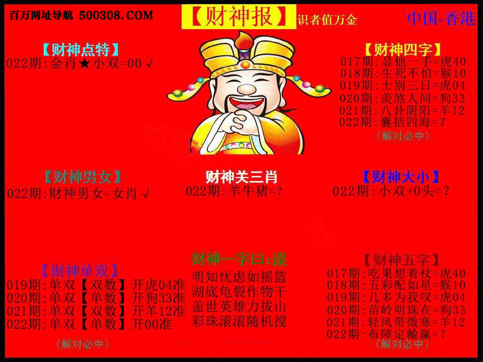 023期:特码预测版\六合独家料\小财神送码\三字联\曾道人玄机字